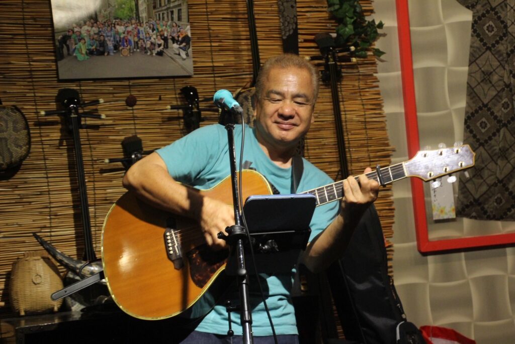 カメラマンは田原吉男さん。ライブ写真をいつも素敵に撮影してくださっております。実はわたしのシマ唄教室の生徒さんでもあります。今回のジャケットの写真は田原吉男さん撮影です。